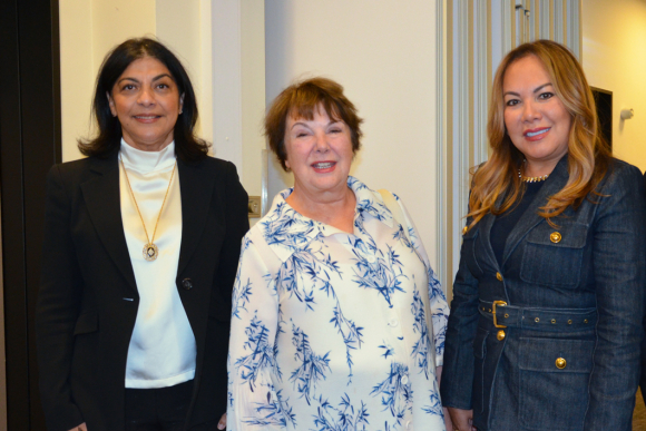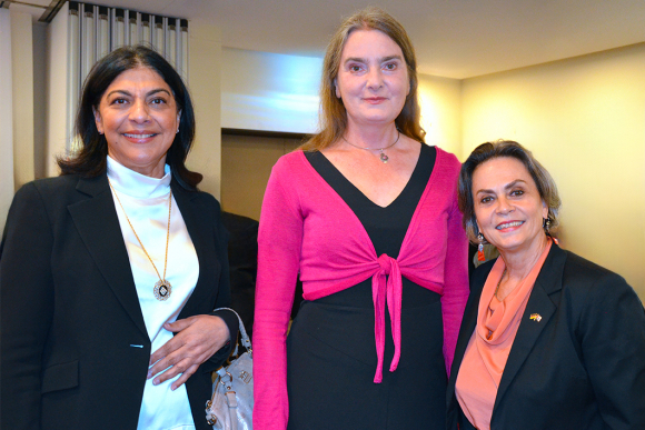 v.li.: Iris Pujol Rodriguez, Botschafterin der Dominikanischen Republik; Dr. Irene Ernst, CEO des Diplomatischen Magazins; Claudia Ravano, Ehefrau des Botschafters von Monaco