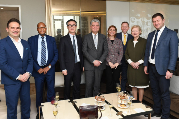 f.l.t.r.: H.E. Dilshod Akhatov, Ambassador of the Republic of Uzbekistan; Dr Irene Ernst, CEO Diplomatisches Magazin; Jan Martensen, Director of Government Sales Waldorf Astoria