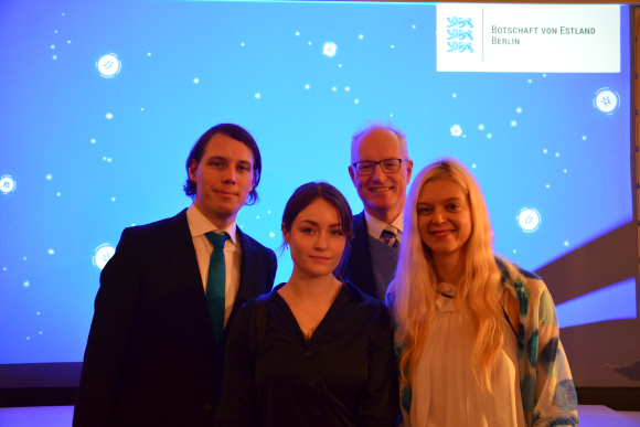 Botschafterin Linntam zitierte aus Lennart Meris Nationalfeiertagsrede Mitte der 90er Jahre, in der er die „Stärken der Esten“ hervorgehoben hatte: gesunder Menschenverstand, Lernfähigkeit und der Wille zu handeln. Und Widerstandskraft, eine Folge sowjetischer Besatzungserfahrung. Diese Haltung habe Estland auf die Werte Gerechtigkeit, Recht und Freiheit gegründet. Nicht „das Recht der Macht“ zähle, sondern „die Macht des Rechts.“