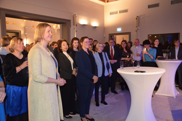 v.li.: Die Botschafterinnen von Estland, Japan, Luxemburg, die stv. Büroleiterin des Staatsministers Anne Kathrin Kirsch, die Botschafterin der Schweiz
