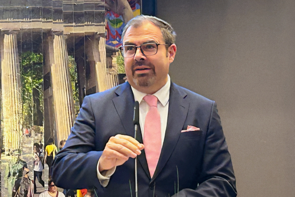 Florian Hahn, Staatsminister im Auswärtigen Amt und CSU-Mitglied, hielt seine Rede im Anschluss an die Begrüßungsrede der rumänischen Botschafterin