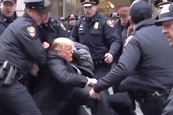 Ein gefälschtes, von Midjourney erstelltes Bild derVerhaftung von Donald Trump