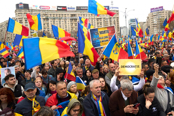 Protest in Bukarest zum Geburtstag von Călin Georgescu, 26. März 2025
